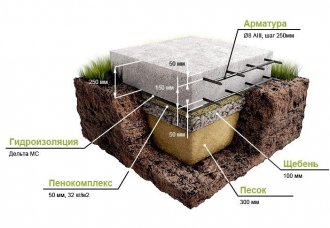 Плитный фундамент обустраивается для небольших домов без подвала, возводимых на пучинистых почвах. В этом случае основой здания служит железобетонная плита, которая заливается под всю площадь постройки с предварительной закладкой горизонтальной гидроизоляции.